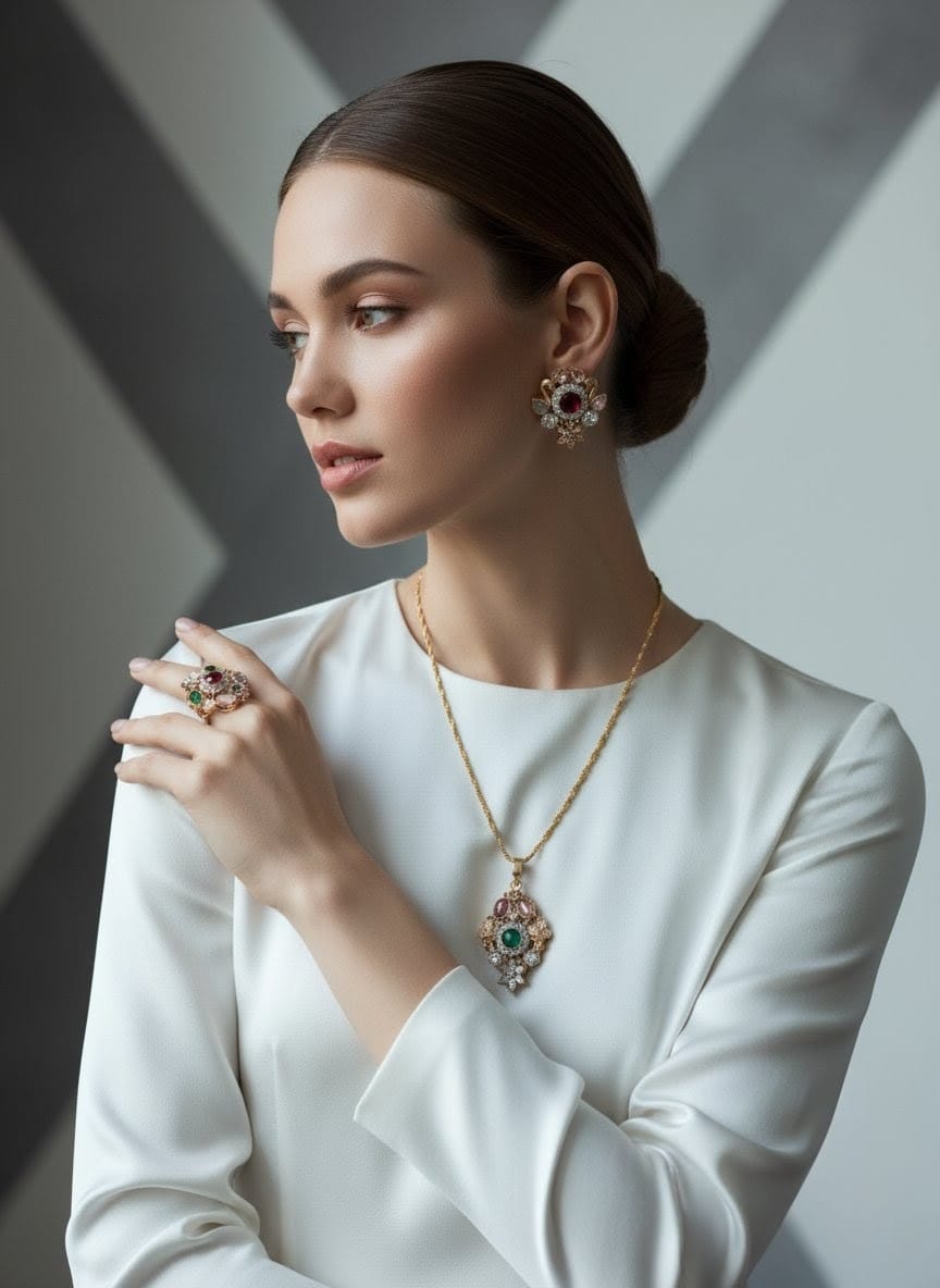 Festive Style Jewellery Set with Pendant, Ring & Earrings