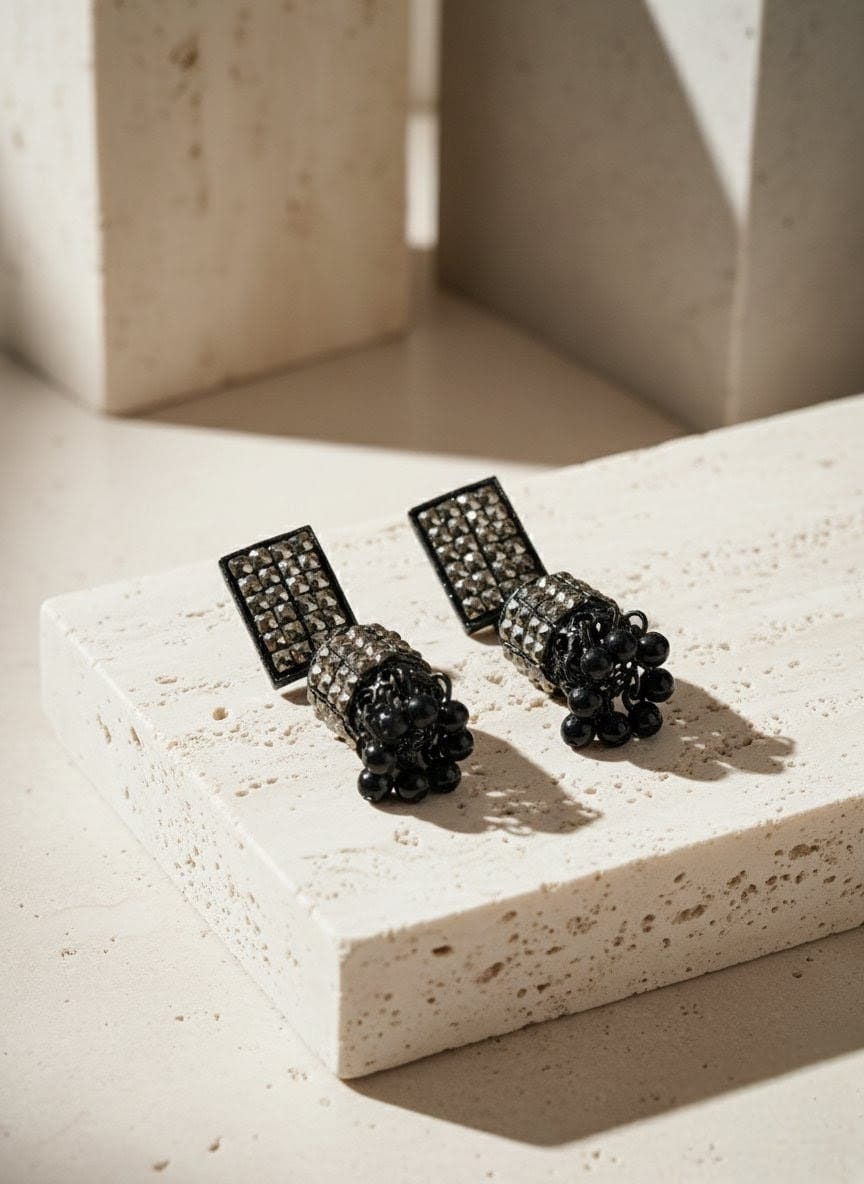 Bring a chic modern twist to tradition with these metal base fusion jhumkas, crafted with precision and style. The unique modern fusion design makes them perfect for festive events, parties, or everyday wear, giving you a statement look that’s both elegant and versatile.