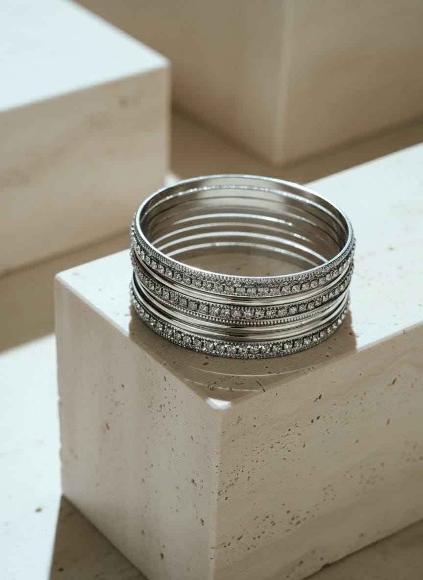 Add a touch of elegance to your jewelry collection with these Metallic Bangle Sets, available in medium (2/8) and small (2/6) sizes. Designed with a smooth metallic finish, these bangles bring together classic style and modern sophistication. Perfect for every occasion — from daily wear to festive events.