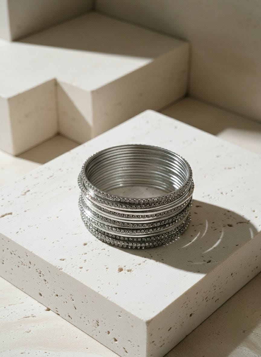 Add timeless charm to your look with this Metallic Elegant Fancy Bangle Set, designed to enhance your festive and formal outfits. Crafted with a sleek metallic finish, this set reflects refined beauty and classic style. The bangles are in slightly used but excellent condition (9/10) — offering premium elegance at an affordable price.