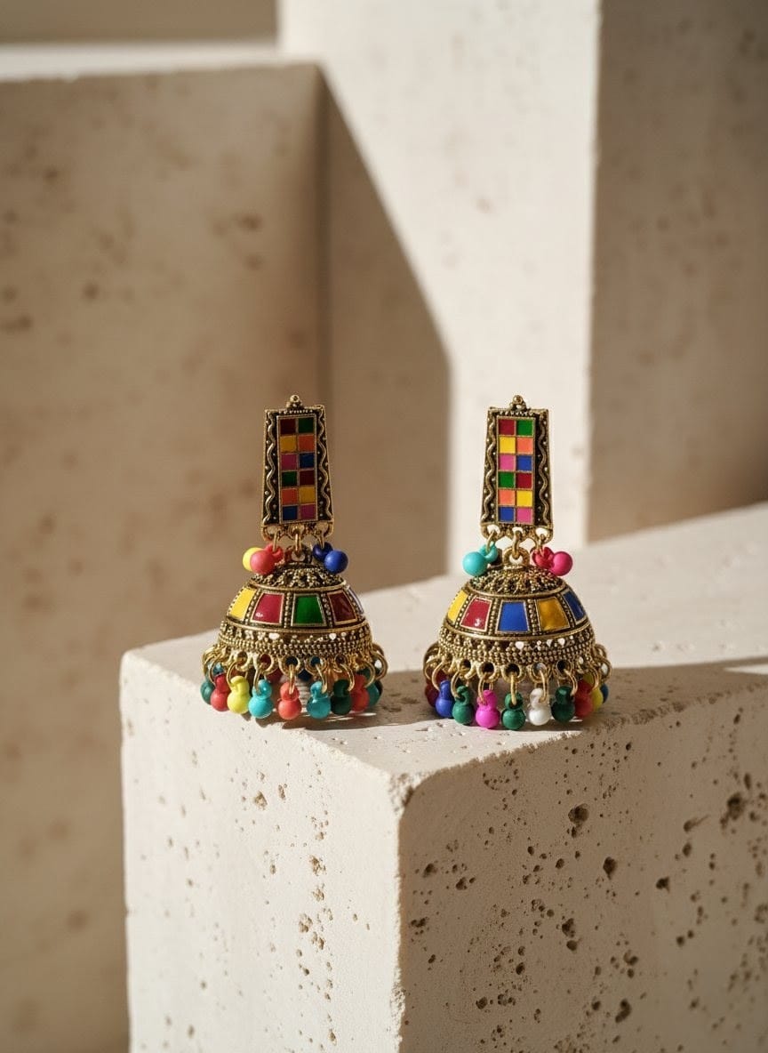 This jhumka set blends traditional craftsmanship with modern comfort — giving you the look of royal elegance without the heaviness.