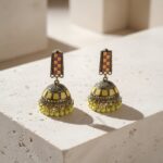 Expertly crafted with delicate detailing, this jhumka set blends traditional charm with modern elegance, adding a radiant touch to any outfit.