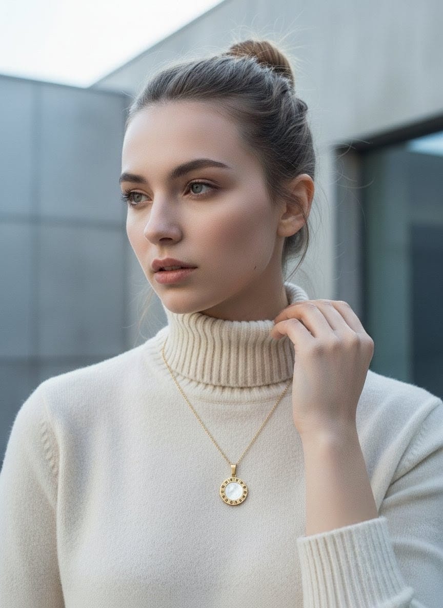 Add a chic and elegant touch to your everyday style with this White Pendant Necklace, paired with a gold chain engraved with Roman numerals. Its minimalist yet classy design makes it perfect for both casual and formal wear, adding a subtle hint of sophistication to any outfit.